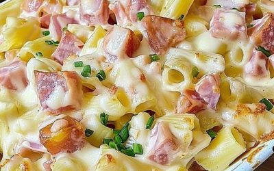 Ingrediënten: 250 g penne rigate of andere korte pasta, gezouten water , 250 g rauwe ham in blokjes, 250 g…