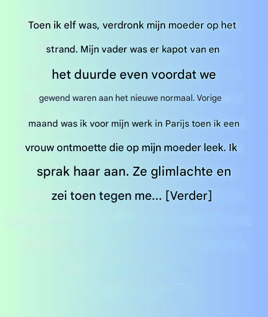 Toen ik elf was, verdronk mijn moeder op het strand. Ze was een uitstekende zwemmer, maar werd meegesleurd door een vloedgolf. Mijn vader was er kapot van en het duurde even voordat we gewend waren aan het nieuwe normaal.
