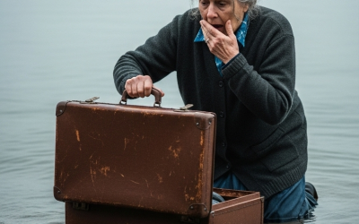 Ik zag mijn schoondochter de koffer in het meer gooien. Maar ik hoorde een gedempt geluid van binnenuit komen. Ik rende om hem op te halen en forceerde de rits open… en mijn hart stond stil. Wat ik binnen zag, deed me trillen van afschuw.