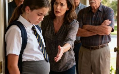 De veertienjarige Emily Harper stond op de veranda, haar koffer trilde, tranen stroomden over haar wangen. De lucht in Cedar…