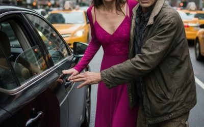 Een dakloze man rende naar me toe en riep: « Neem die auto niet! » — Ik luisterde niet. Minuten later werd iedereen die aanwezig was bij de lezing bleek toen ze zagen wie er achter me binnenkwam.