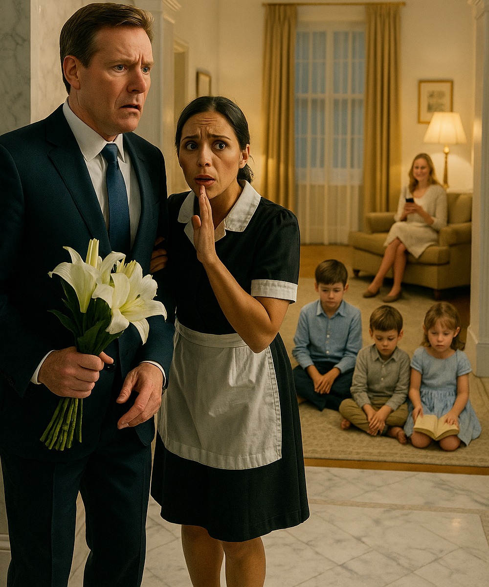 De miljardair kwam vroeg thuis – en de meid fluisterde: “Blijf stil”