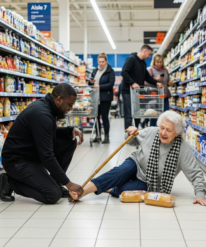 De supermarktdeuren schoven met een vermoeid gesis open en lieten een vlaag koude herfstlucht binnen. Een kleine vrouw, niet langer dan 1,50 meter en ver in de negentig, stapte voorzichtig naar binnen. Ze leunde op haar wandelstok alsof die deel uitmaakte van haar lichaam, elke stap een stille wisselwerking tussen wil en zwakte.