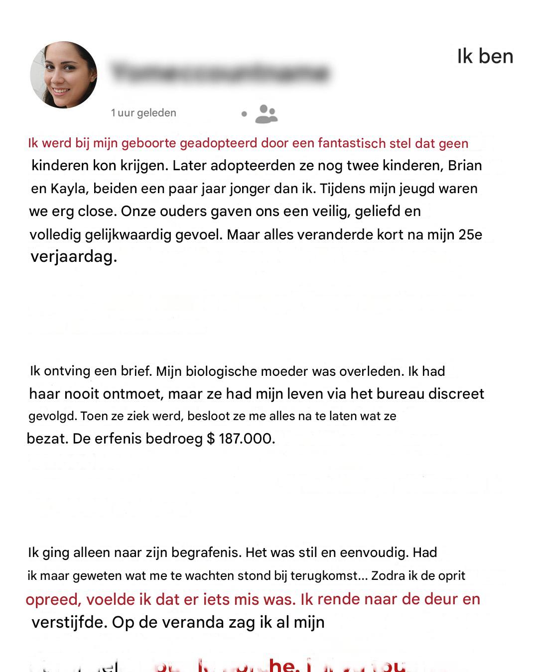De brief die mijn leven veranderde, arriveerde in een crèmekleurige envelop met een postzegel van een advocatenkantoor. Ik opende hem meteen, maar het kostte me drie keer lezen om de informatie echt te verwerken.
