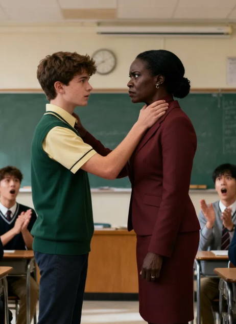 De tl-verlichting op Jefferson High flikkerde toen de laatste les van de dag begon. Mevrouw Naomi Carter, zevenendertig jaar oud, stond vooraan in de klas met haar gebruikelijke kalme aanwezigheid. Ze was pas twee maanden geleden bij de faculteit gekomen en gaf les in Amerikaanse geschiedenis met een onwrikbaar gevoel voor discipline en rechtvaardigheid. De meeste studenten hadden respect voor haar. Maar een kleine groep jongens – zonen van rijke families die dachten dat regels niet voor hen golden – had haar het leven moeilijk gemaakt.
